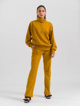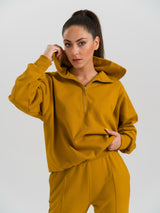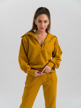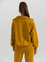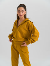Detay : Yumuşak organik sweatshirt kumaştan üst. Hafif bol kesimli, düşük omuzlu, yakası fermuarlı. kollar ve etek ucu geniş ribanalı. İçi yumuşak tüylü.